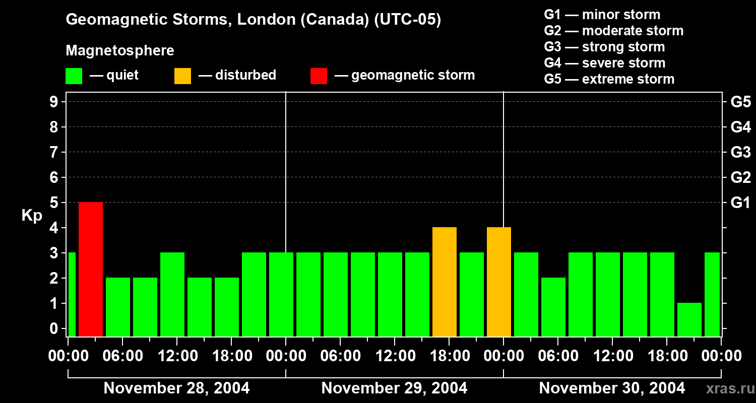 Geomagnetic storms in London (Canada) — Nov 30, 2004