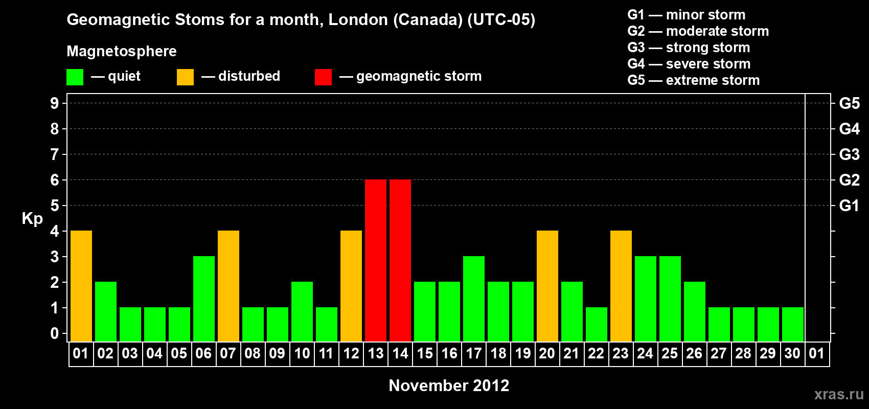Geomagnetic storms in London (Canada) — Nov 30, 2012