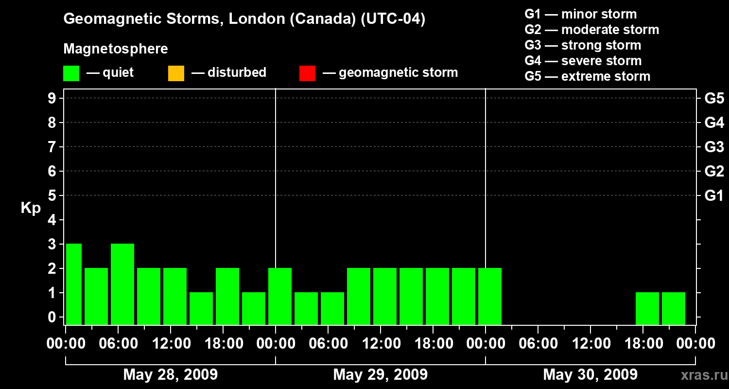 Geomagnetic storms in London (Canada) on May 30, 2009