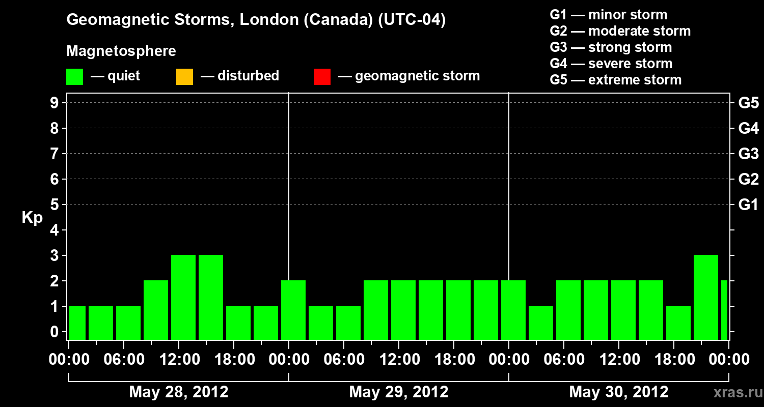 Geomagnetic storms in London (Canada) — May 30, 2012