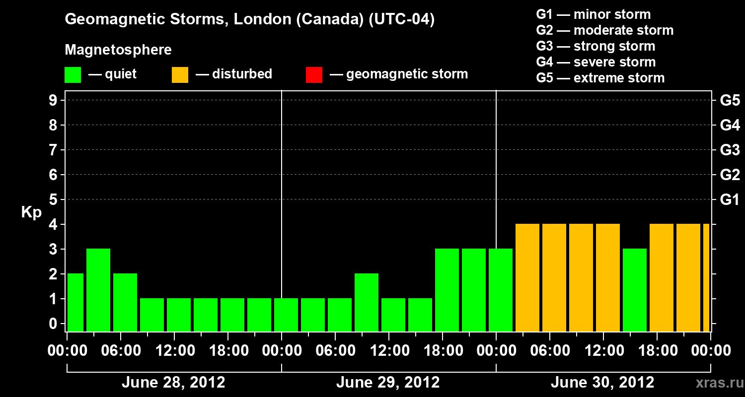 Geomagnetic storms in London (Canada) — Jun 30, 2012