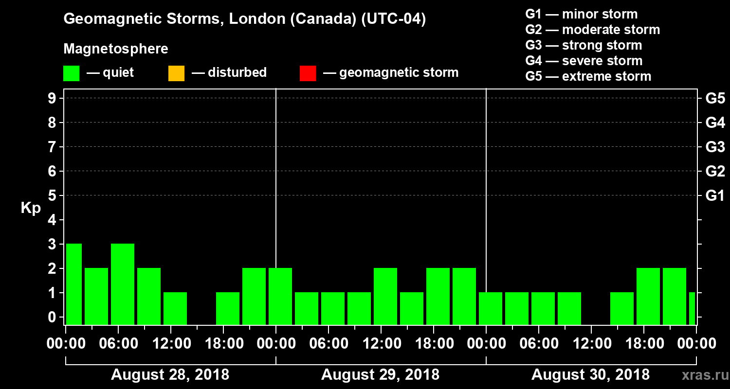 Geomagnetic storms in London (Canada) — Aug 30, 2018