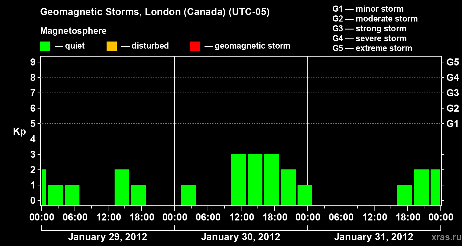 Geomagnetic storms in London (Canada) — Jan 31, 2012