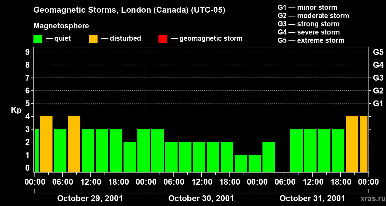 Geomagnetic storms in London (Canada) — Oct 31, 2001