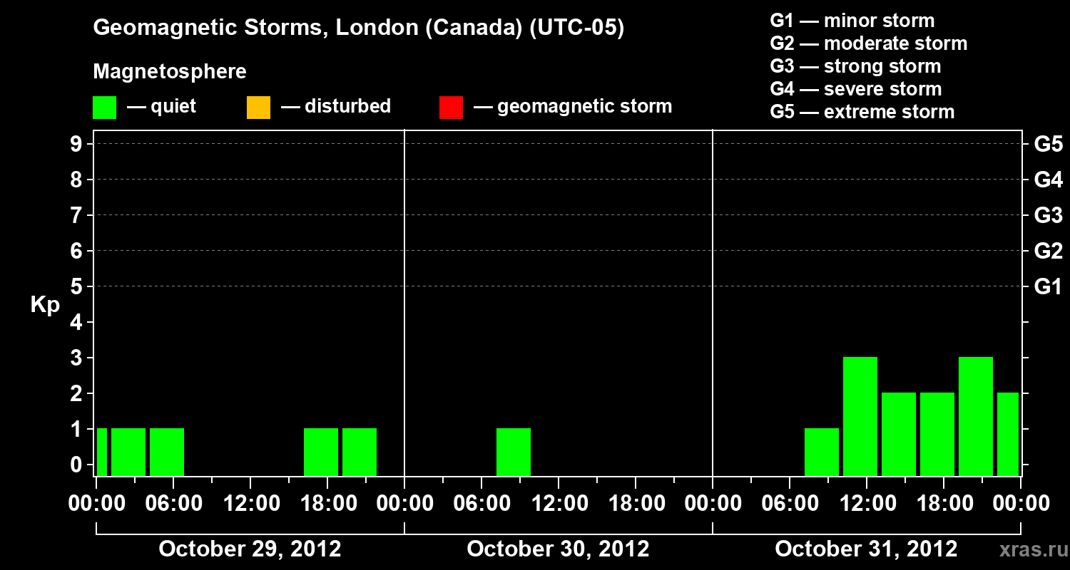 Geomagnetic storms in London (Canada) — Oct 31, 2012