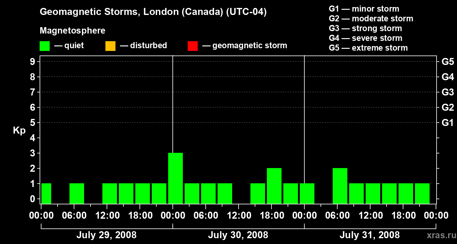 Geomagnetic storms in London (Canada) — Jul 31, 2008