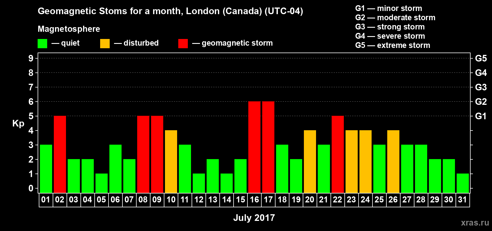 Geomagnetic storms in London (Canada) — Jul 31, 2017