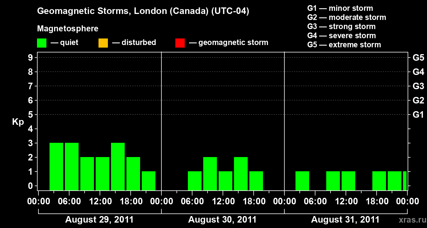 Geomagnetic storms in London (Canada) — Aug 31, 2011
