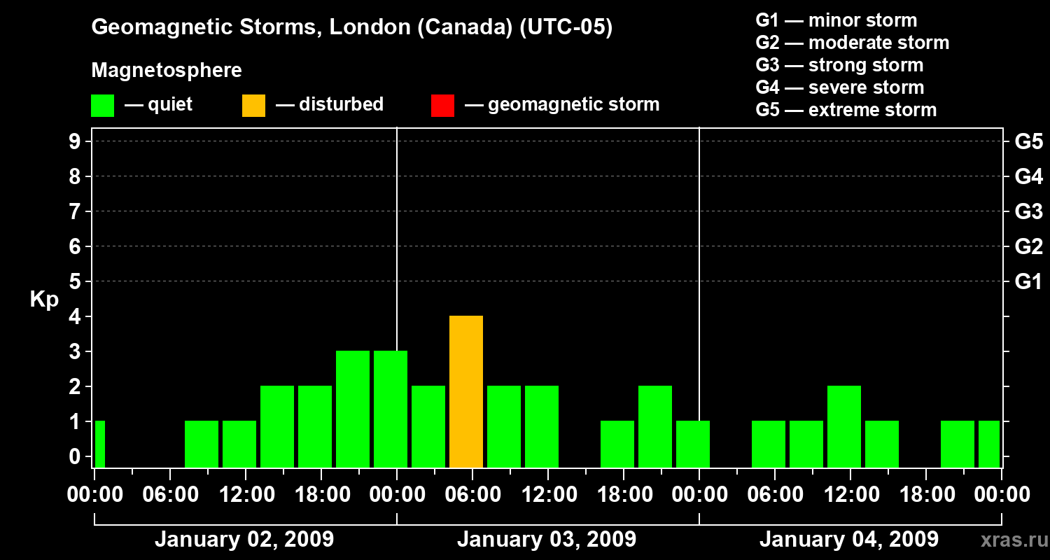 Geomagnetic storms in London (Canada) — Jan 04, 2009