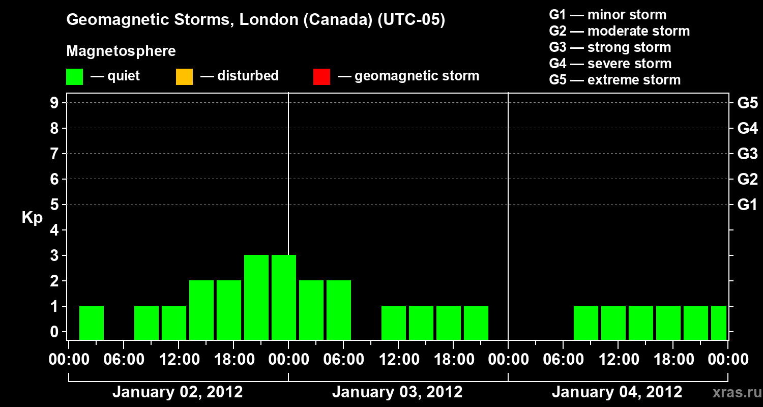 Geomagnetic storms in London (Canada) — Jan 04, 2012