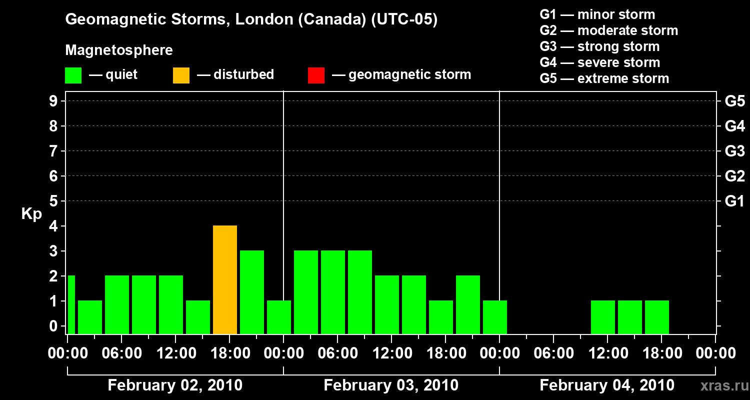 Geomagnetic storms in London (Canada) — Feb 04, 2010