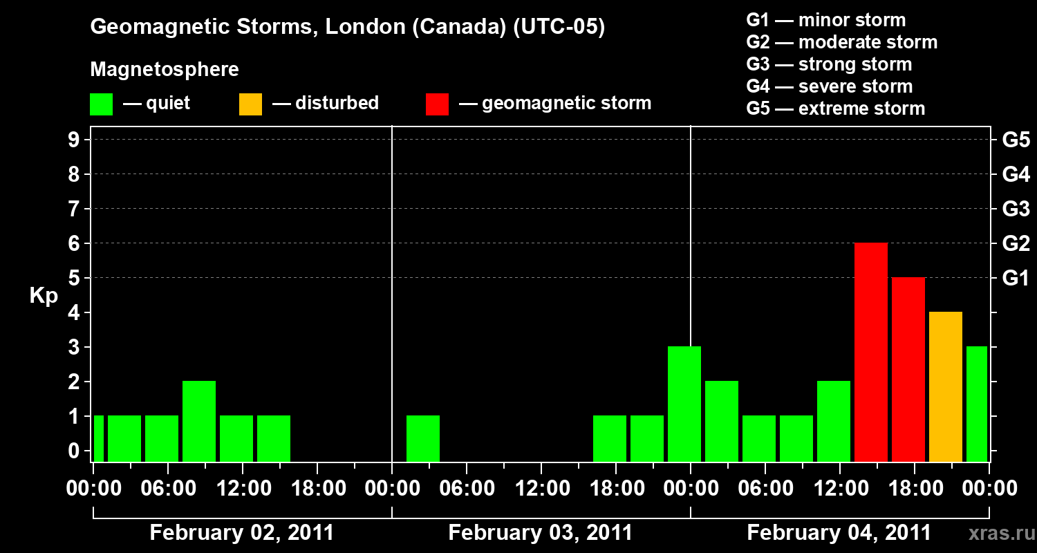 Geomagnetic storms in London (Canada) — Feb 04, 2011