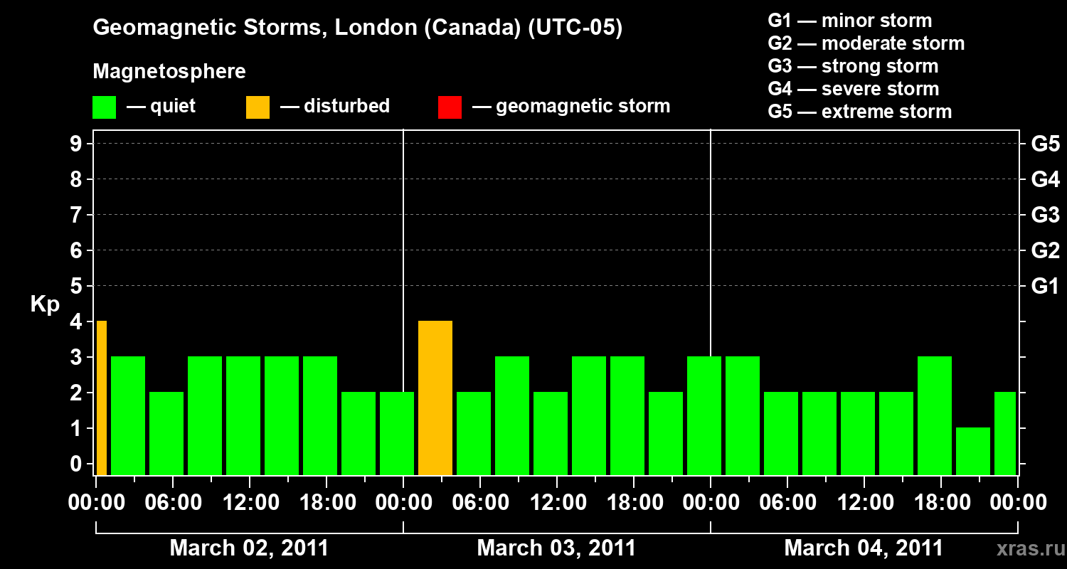 Geomagnetic storms in London (Canada) — Mar 04, 2011