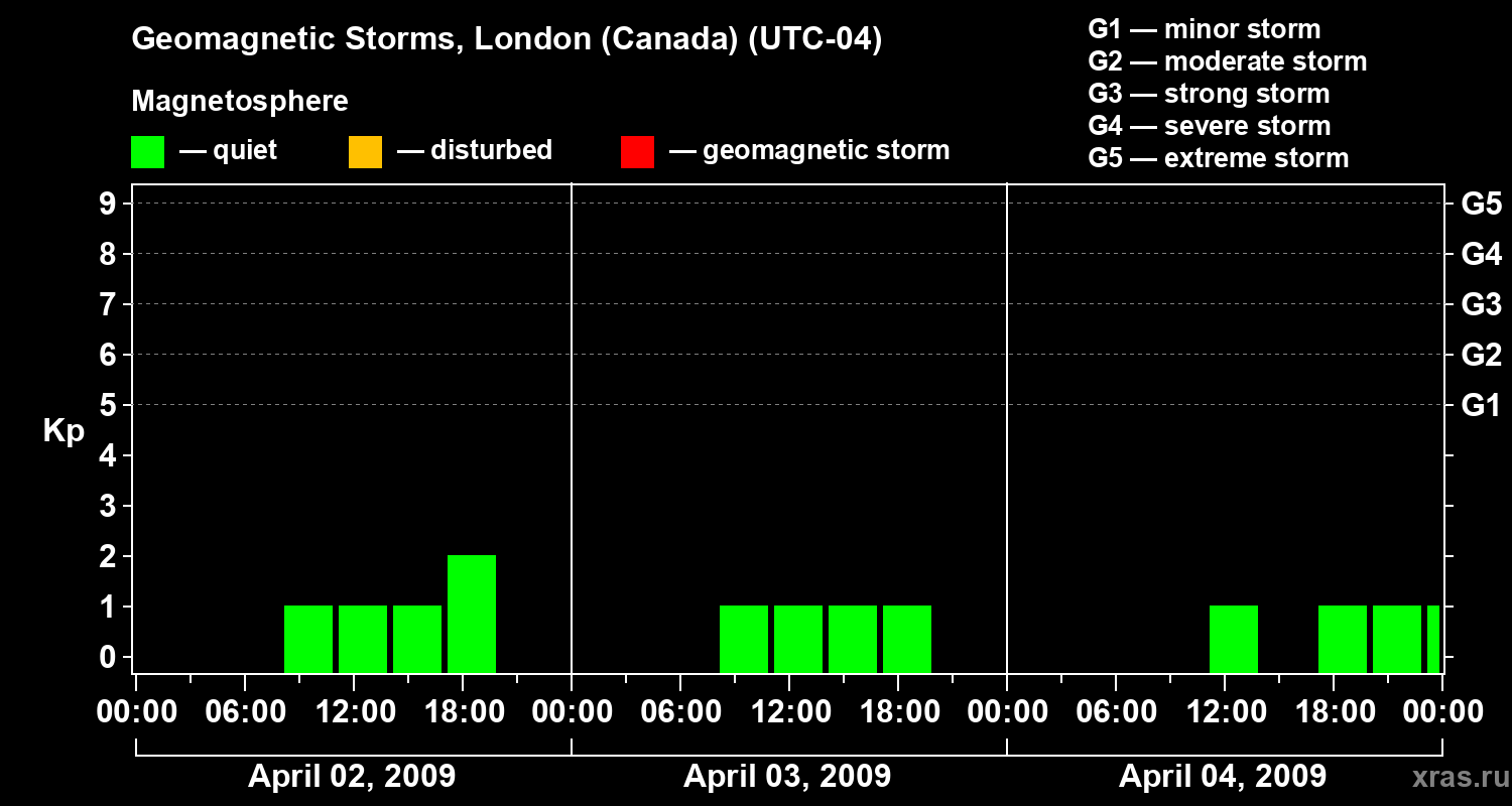 Geomagnetic storms in London (Canada) — Apr 04, 2009