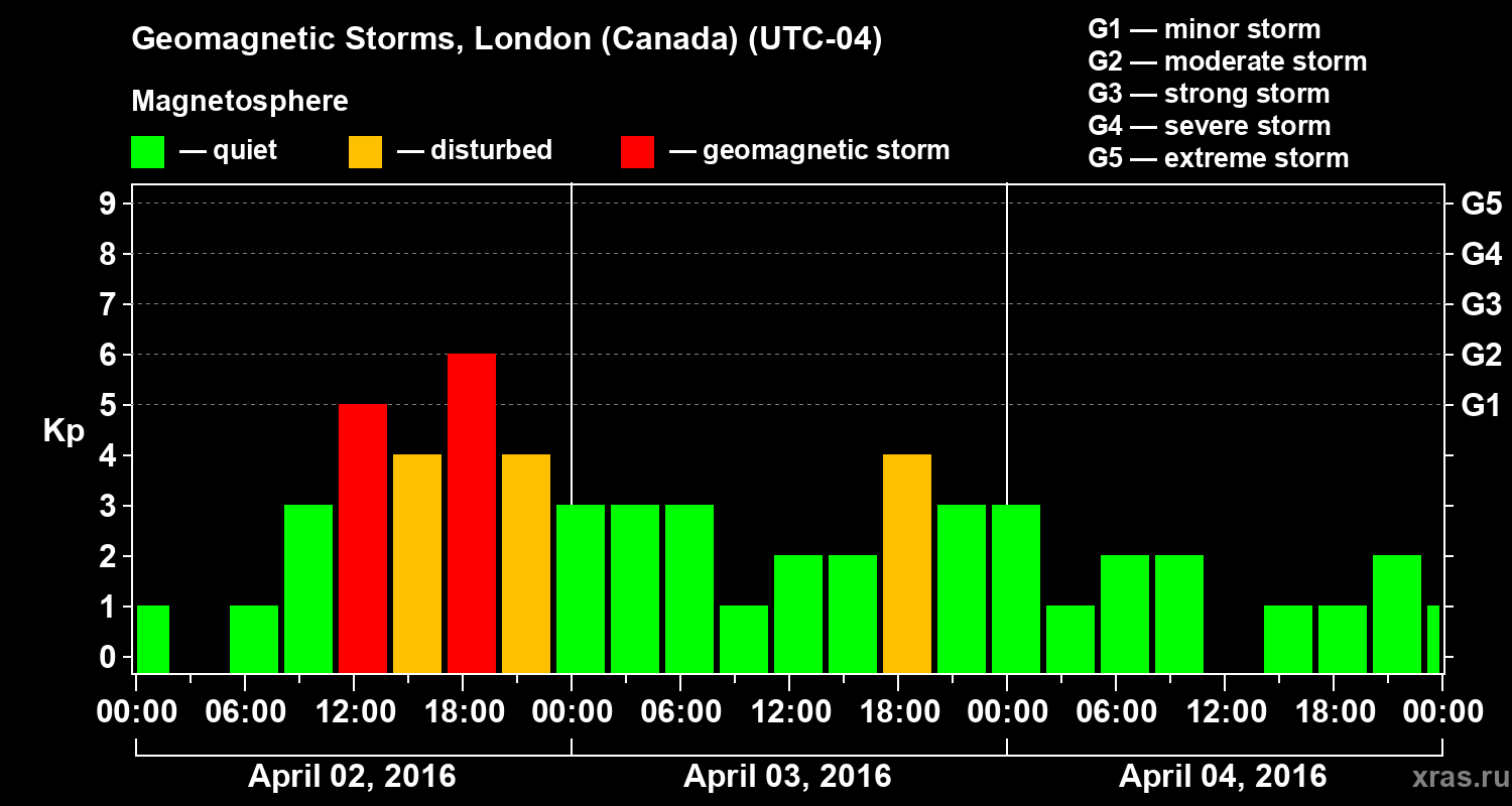 Geomagnetic storms in London (Canada) — Apr 04, 2016