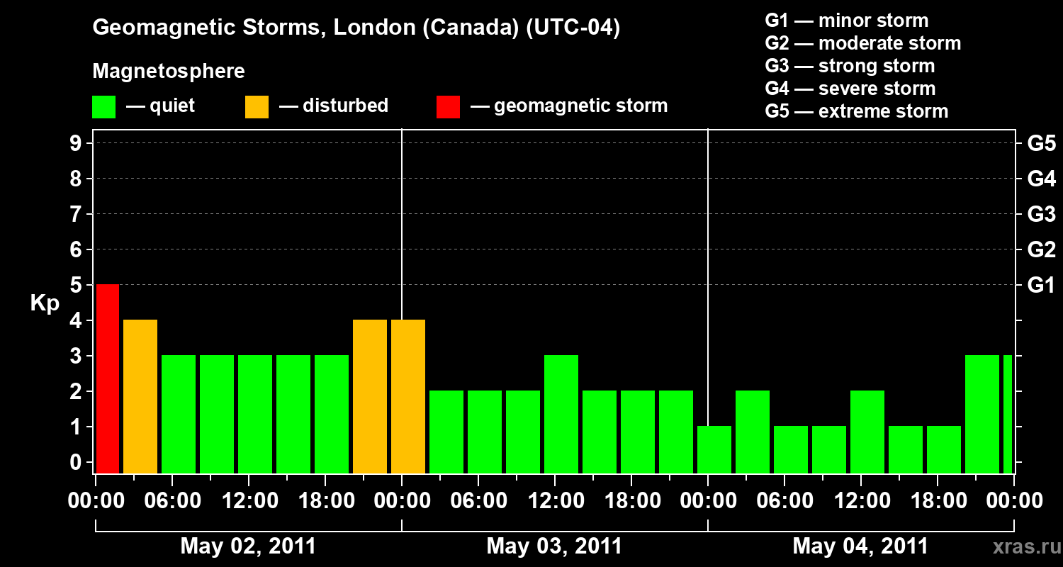Geomagnetic storms in London (Canada) — May 04, 2011