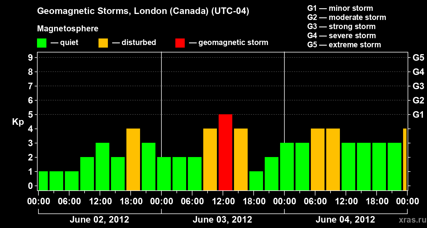 Geomagnetic storms in London (Canada) — Jun 04, 2012