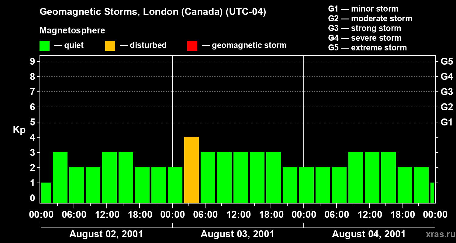 Geomagnetic storms in London (Canada) on Aug 04, 2001