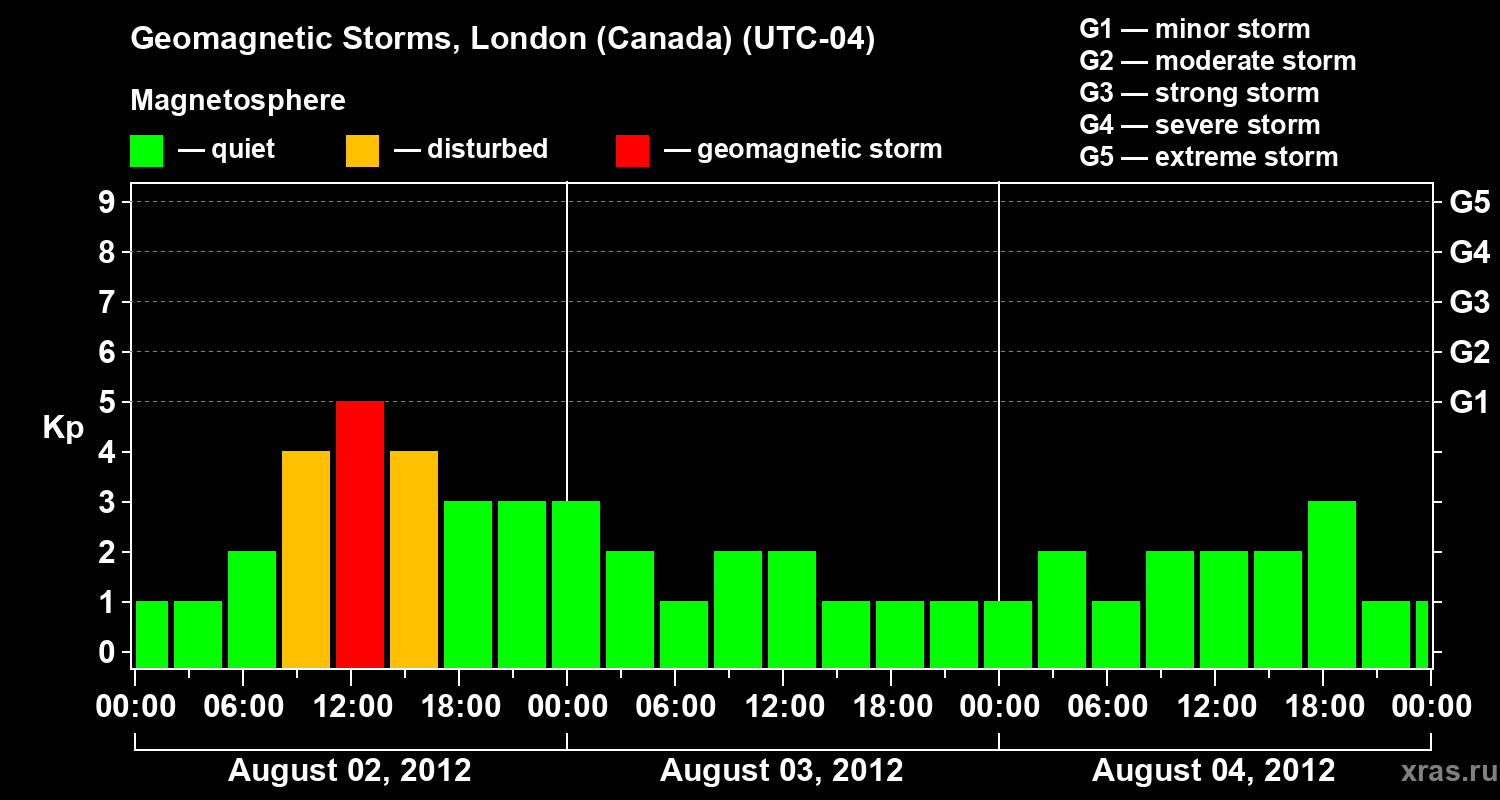 Geomagnetic storms in London (Canada) — Aug 04, 2012