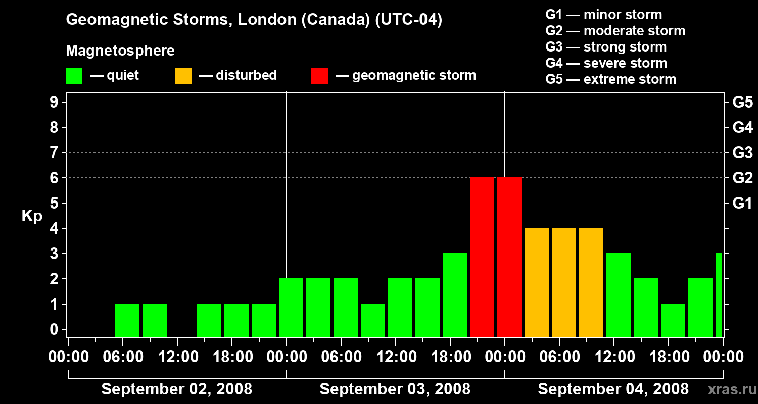 Geomagnetic storms in London (Canada) — Sep 04, 2008