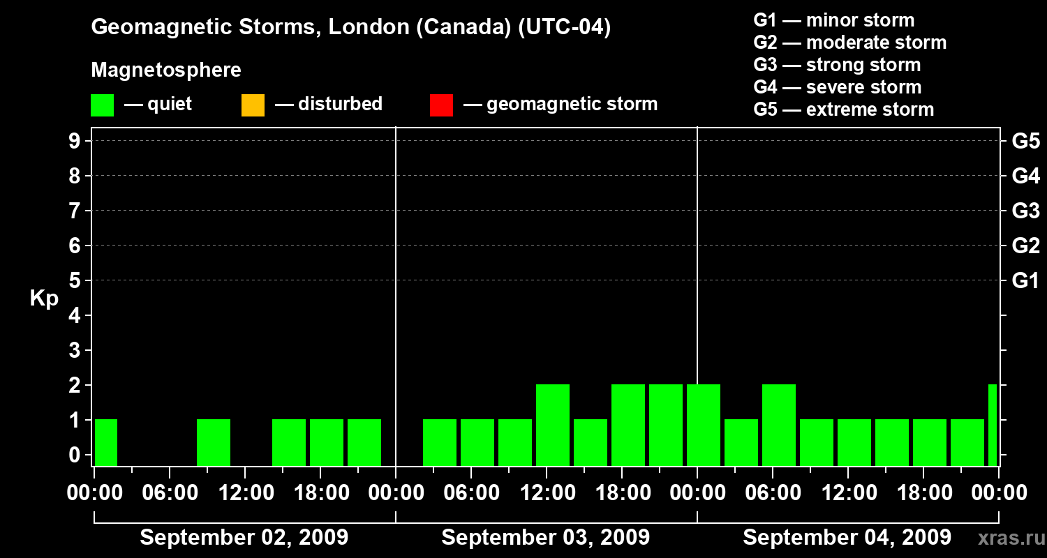 Geomagnetic storms in London (Canada) — Sep 04, 2009