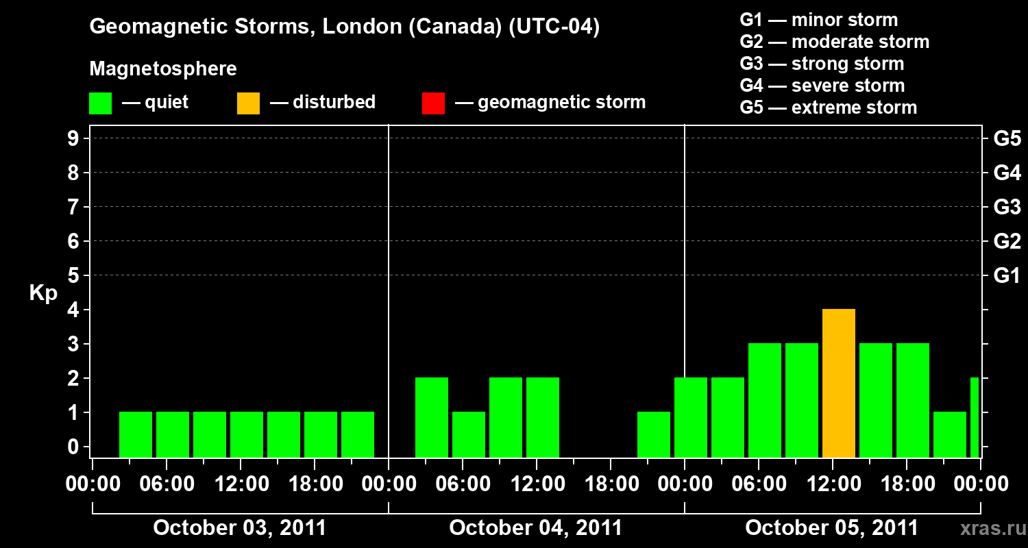 Geomagnetic storms in London (Canada) — Oct 05, 2011