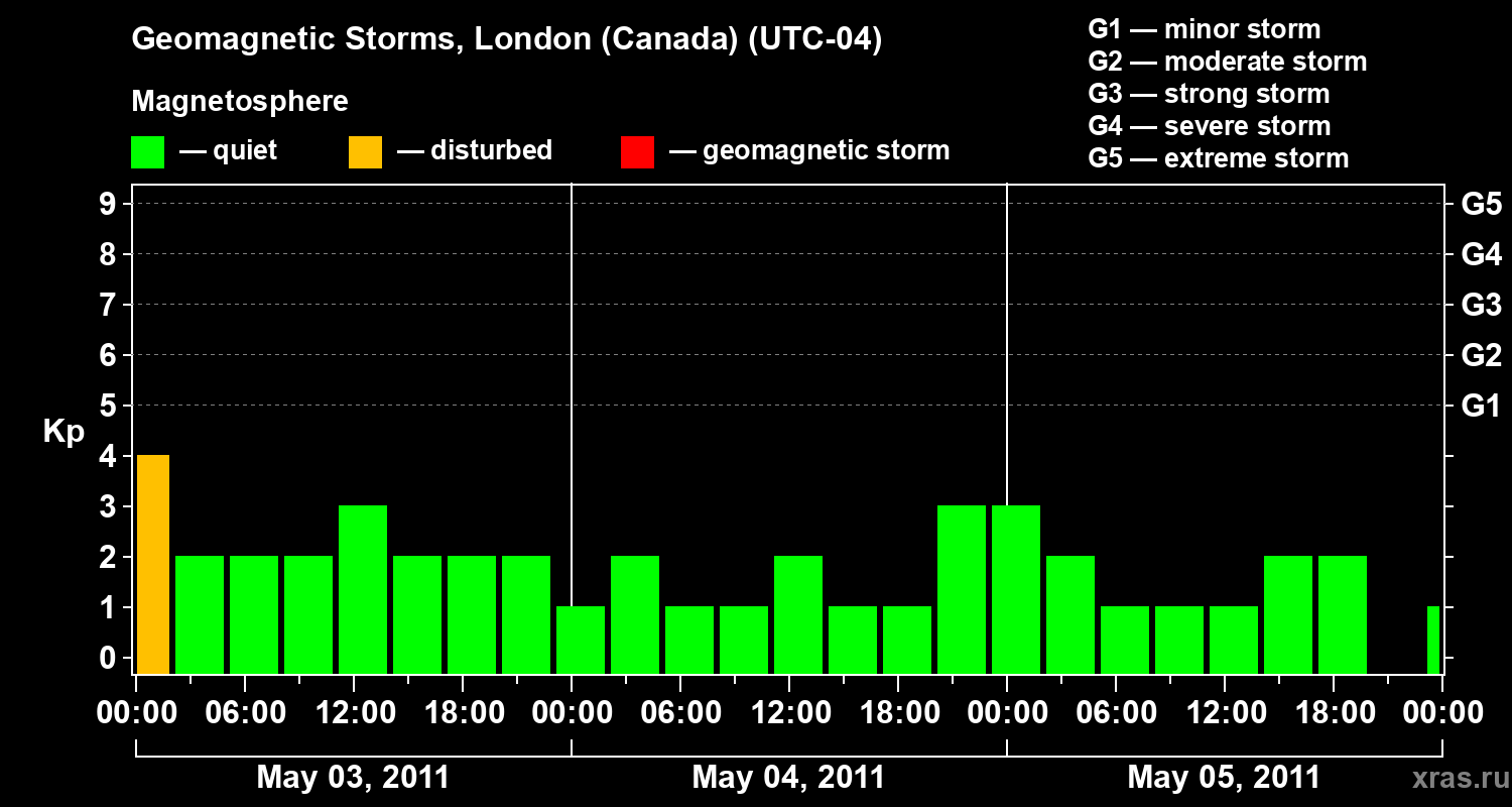 Geomagnetic storms in London (Canada) — May 05, 2011