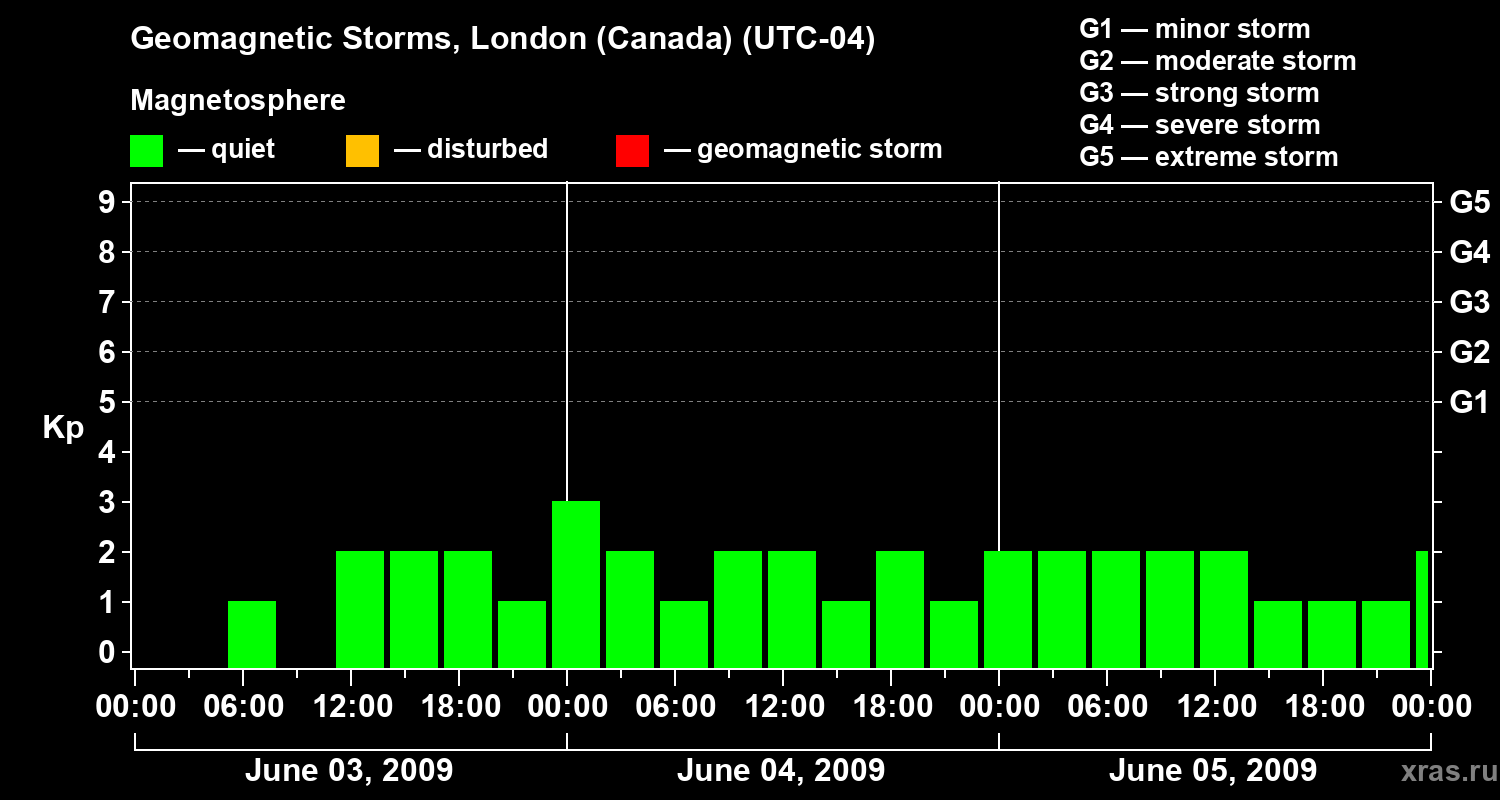 Geomagnetic storms in London (Canada) — Jun 05, 2009