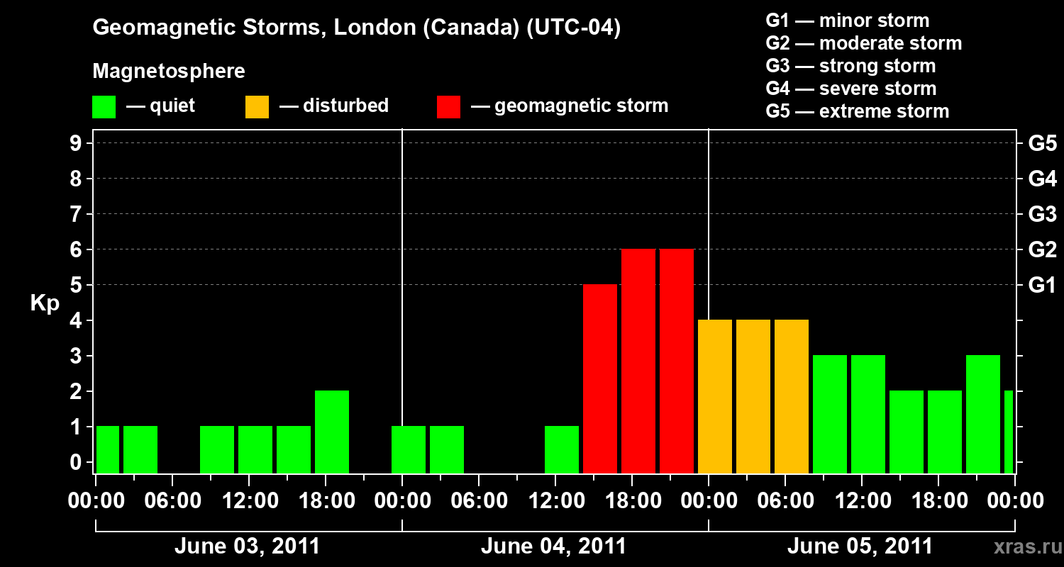 Geomagnetic storms in London (Canada) — Jun 05, 2011