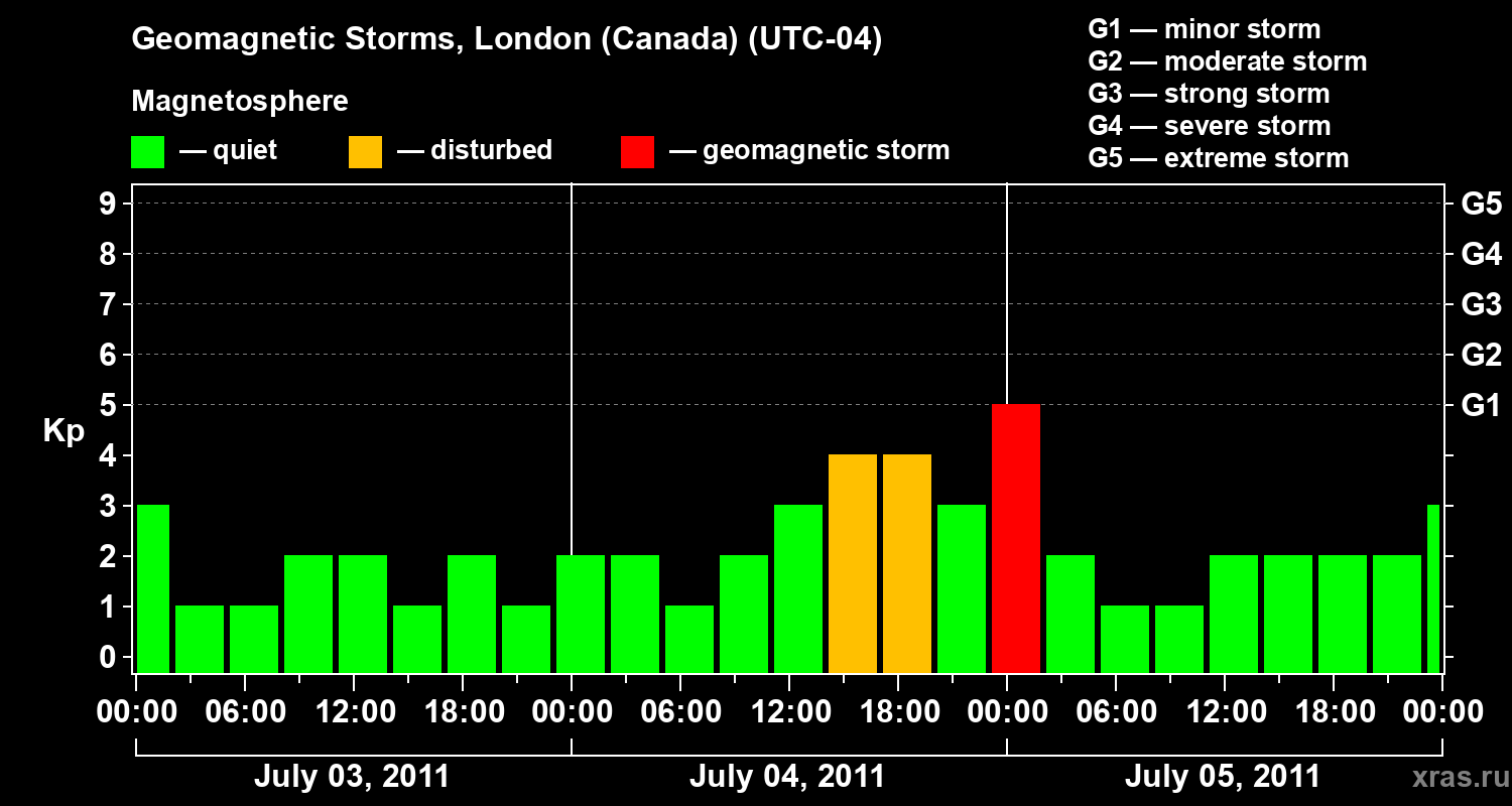 Geomagnetic storms in London (Canada) on Jul 05, 2011