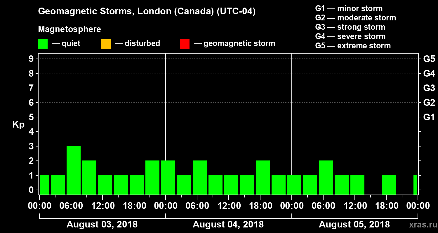 Geomagnetic storms in London (Canada) — Aug 05, 2018