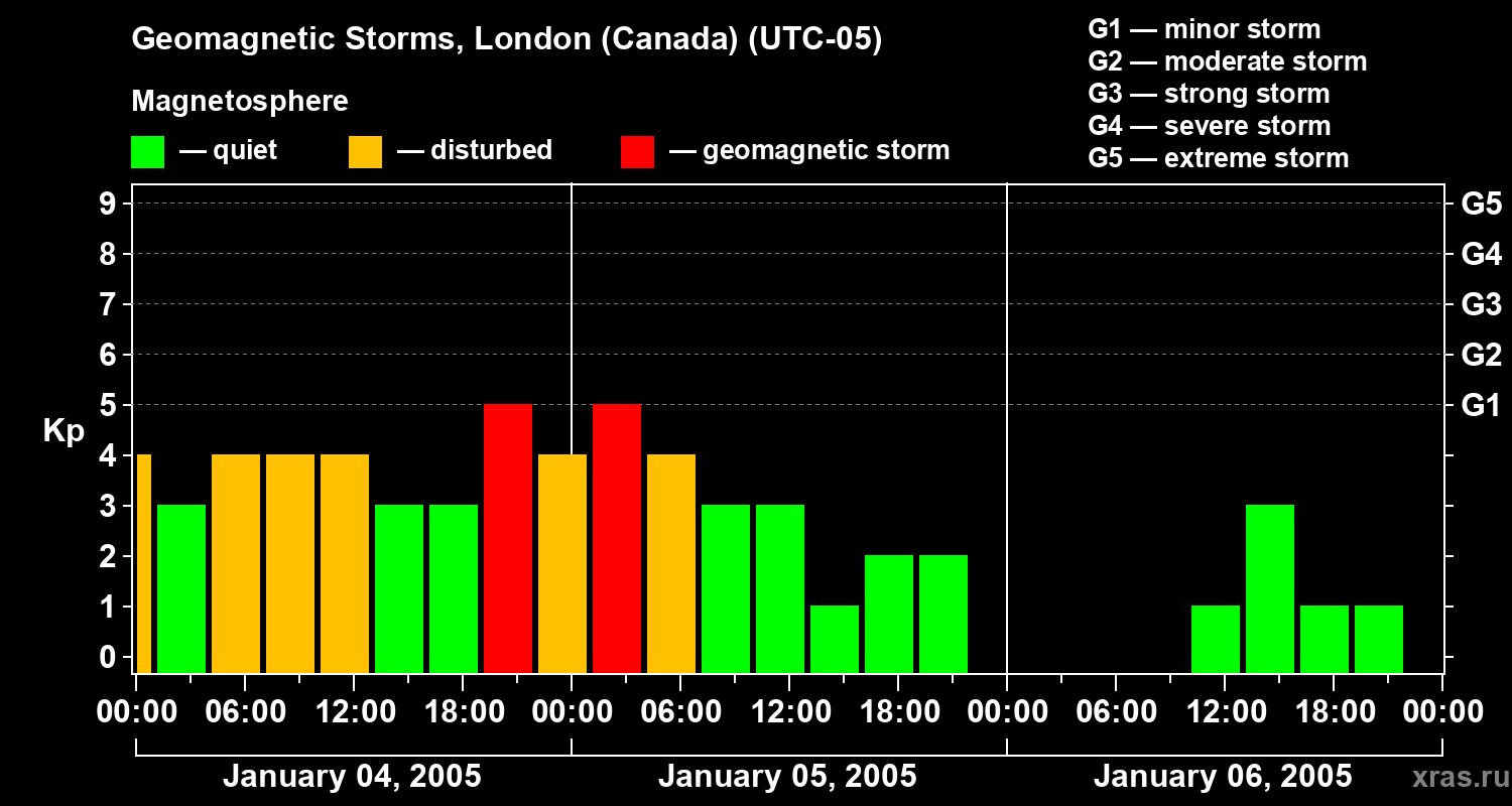 Geomagnetic storms in London (Canada) — Jan 06, 2005
