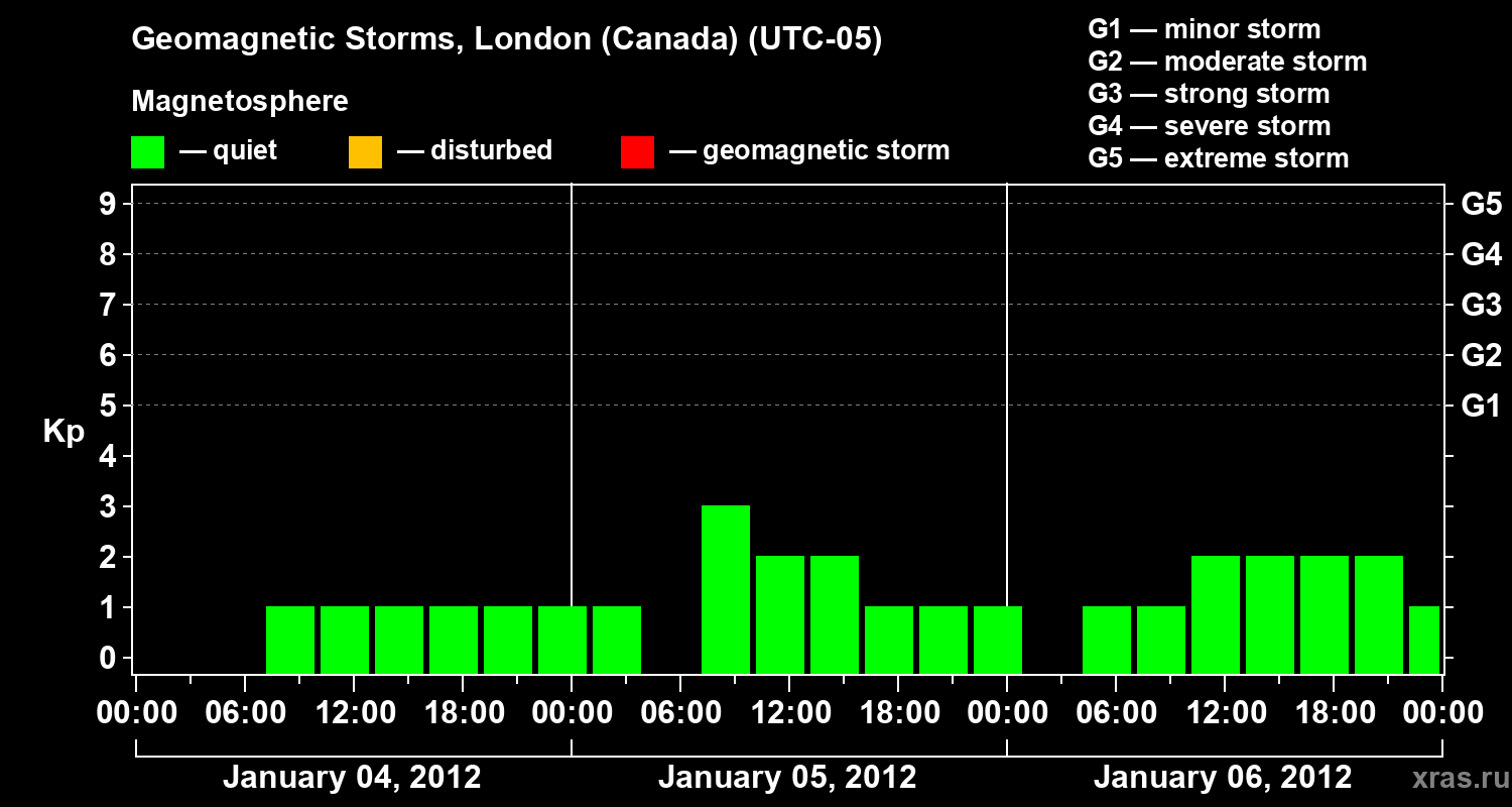 Geomagnetic storms in London (Canada) — Jan 06, 2012