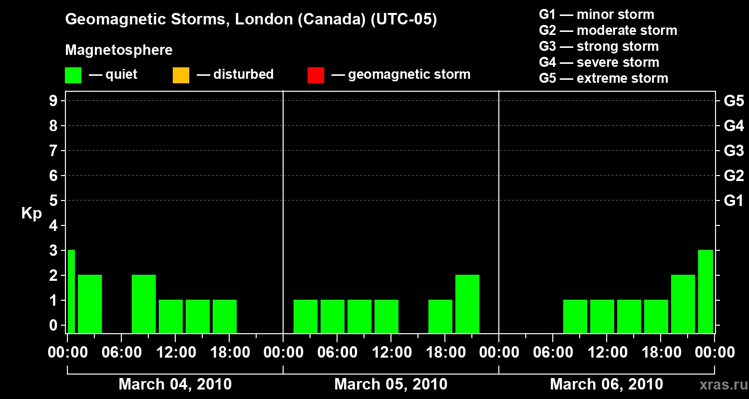 Geomagnetic storms in London (Canada) — Mar 06, 2010