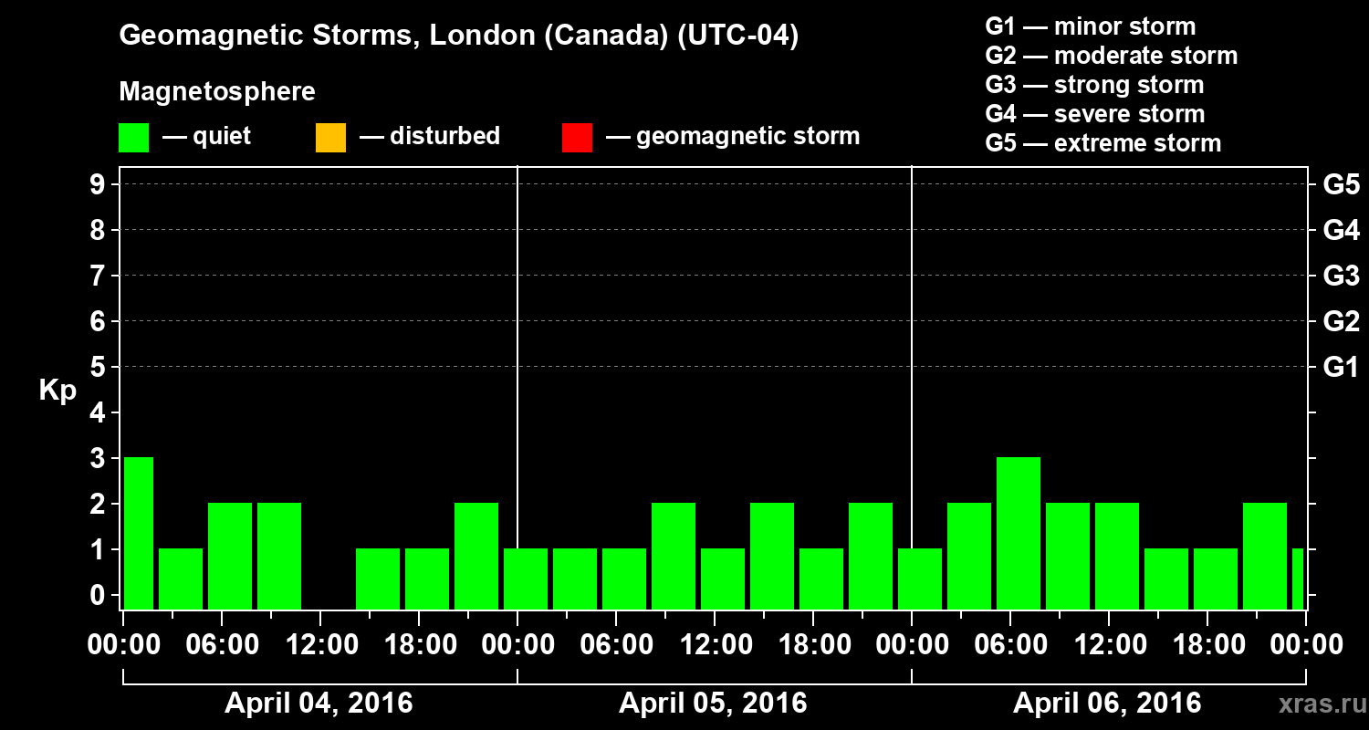 Geomagnetic storms in London (Canada) — Apr 06, 2016