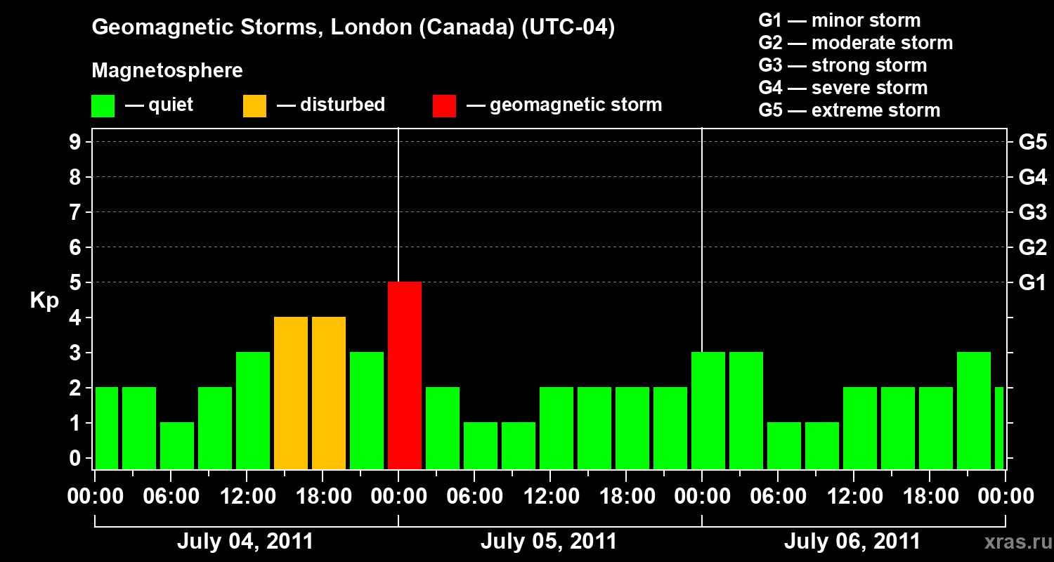 Geomagnetic storms in London (Canada) — Jul 06, 2011