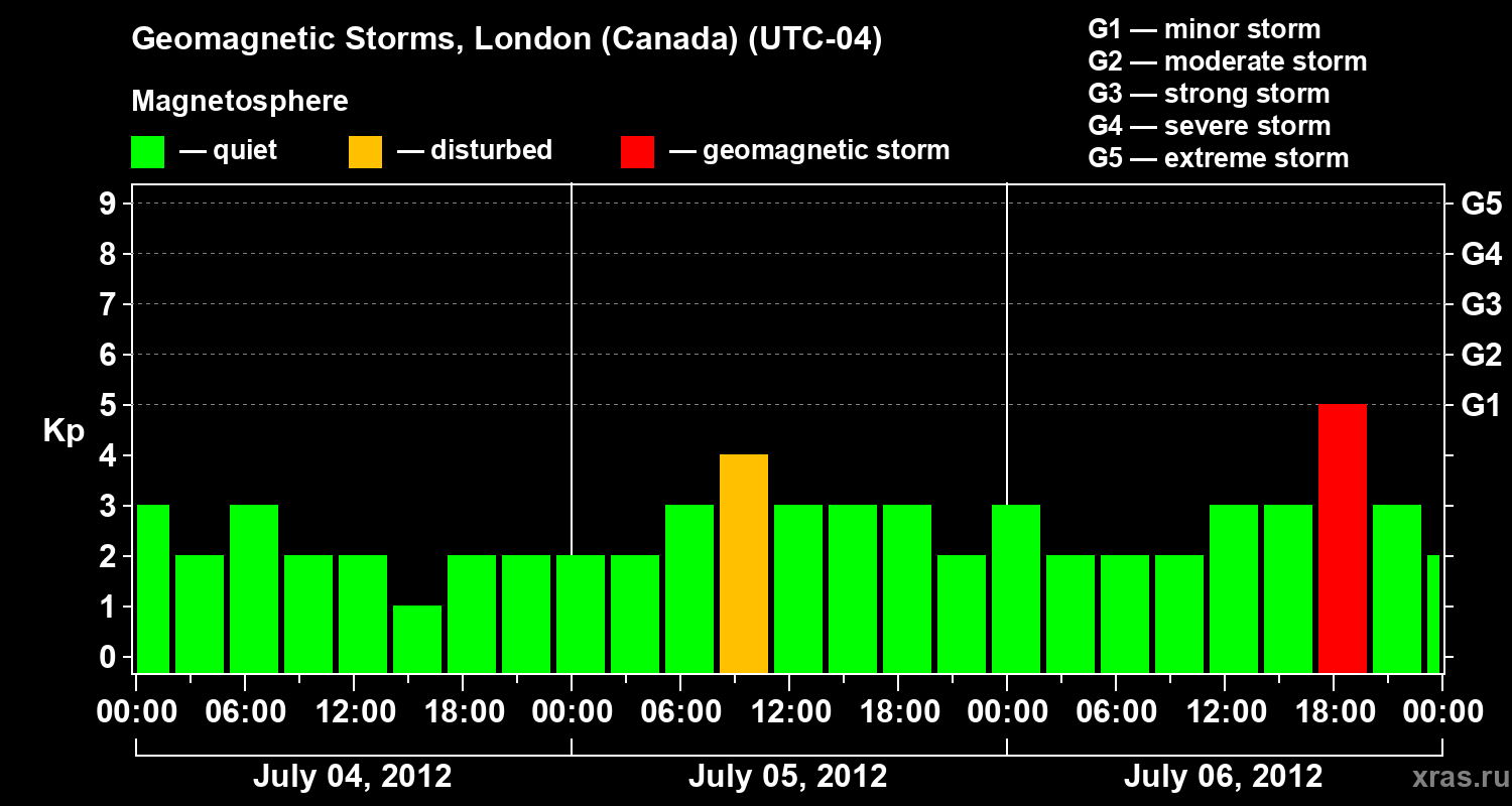 Geomagnetic storms in London (Canada) — Jul 06, 2012