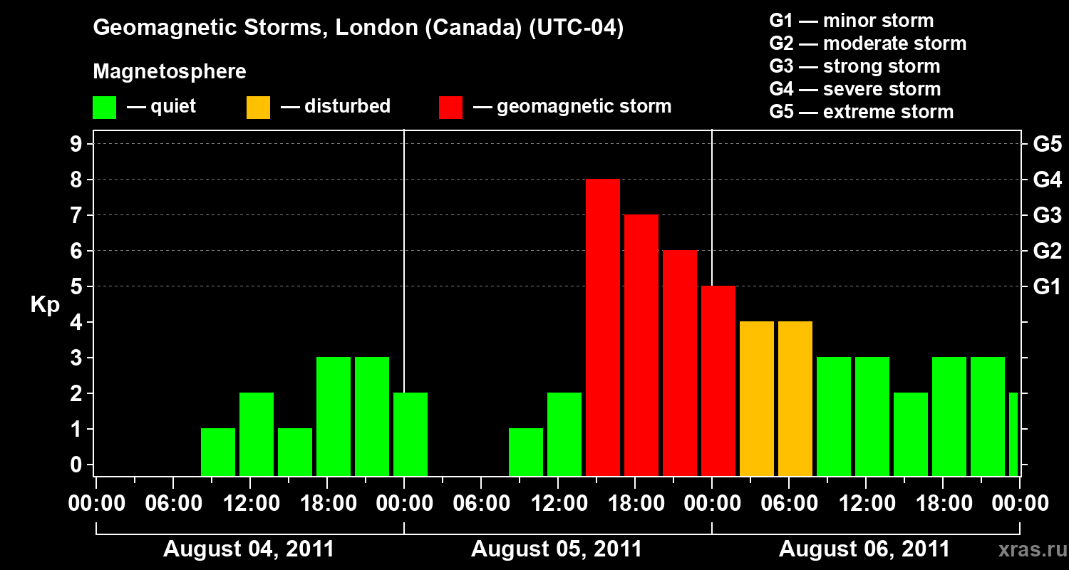 Geomagnetic storms in London (Canada) — Aug 06, 2011