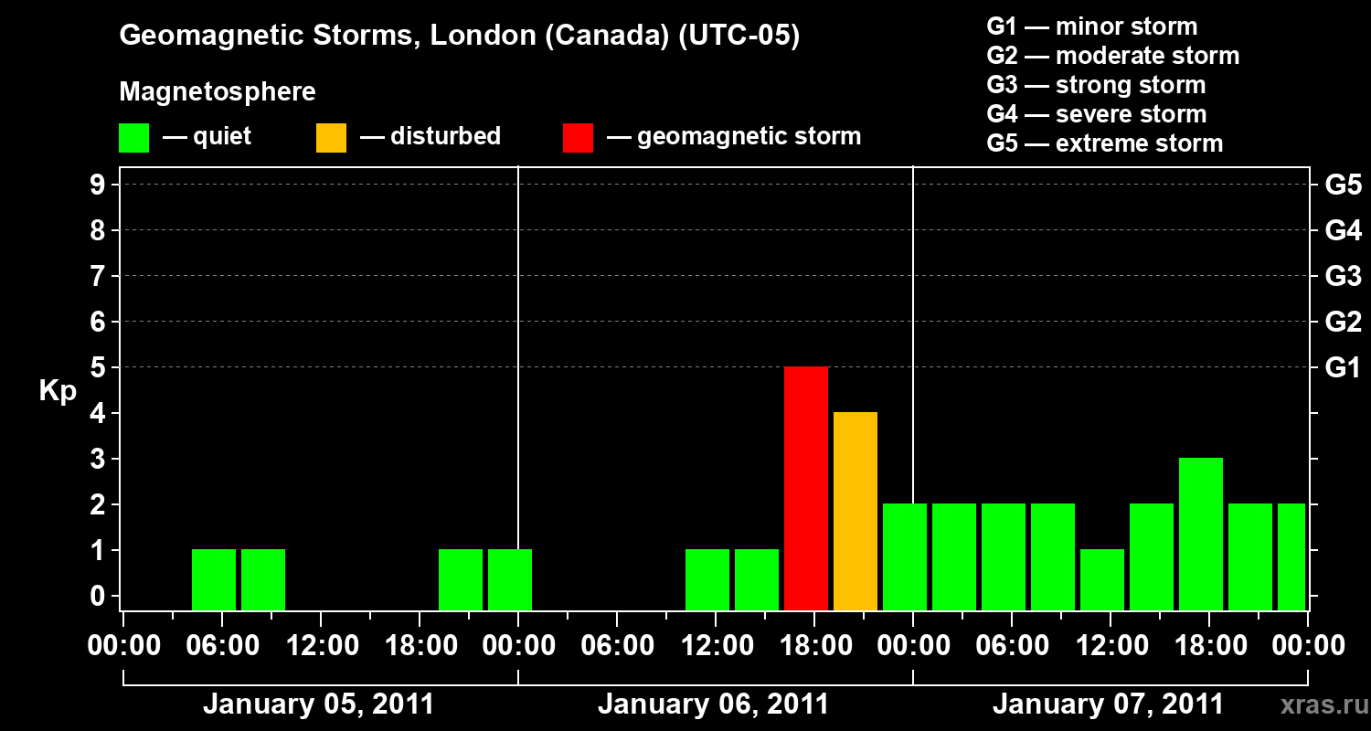 Geomagnetic storms in London (Canada) on Jan 07, 2011