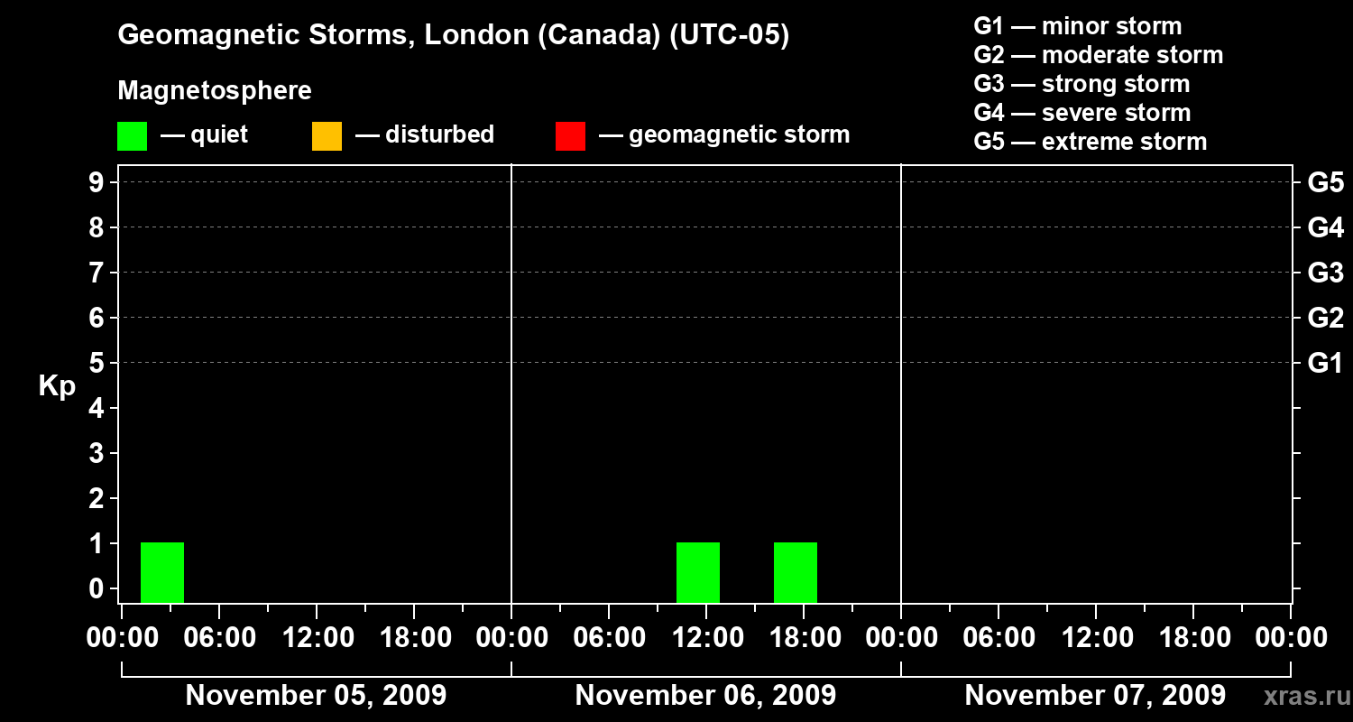 Geomagnetic storms in London (Canada) — Nov 07, 2009