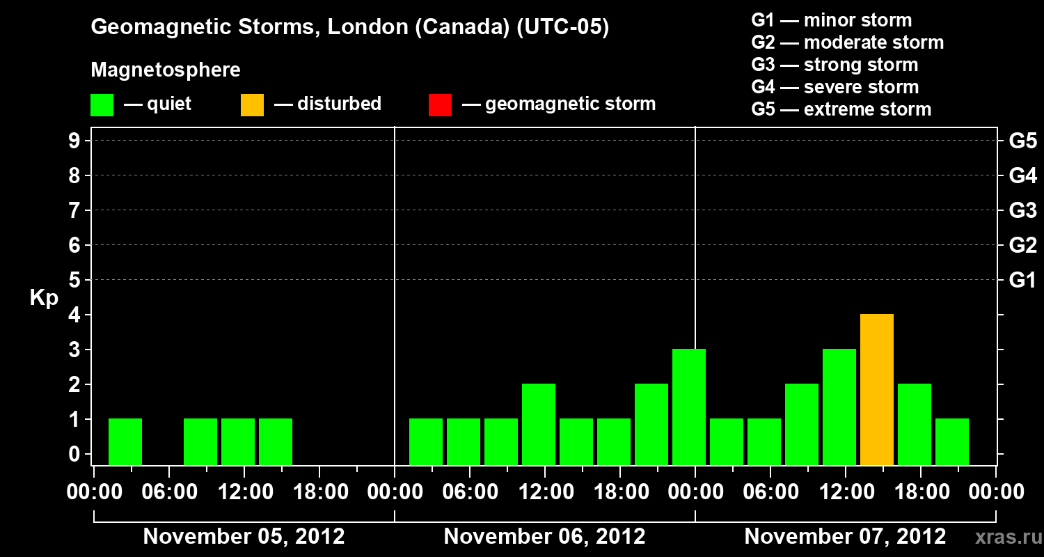 Geomagnetic storms in London (Canada) — Nov 07, 2012