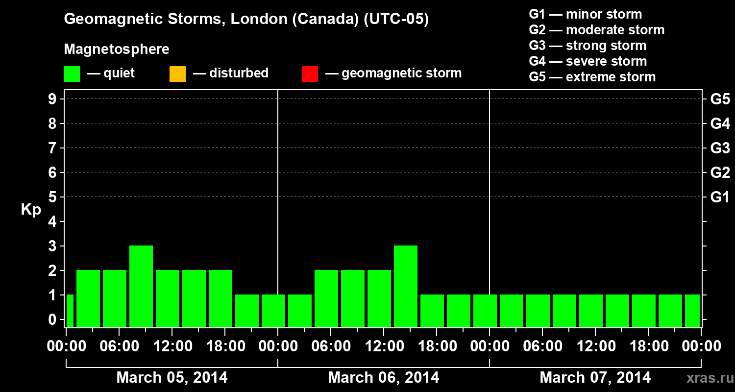 Geomagnetic storms in London (Canada) on Mar 07, 2014