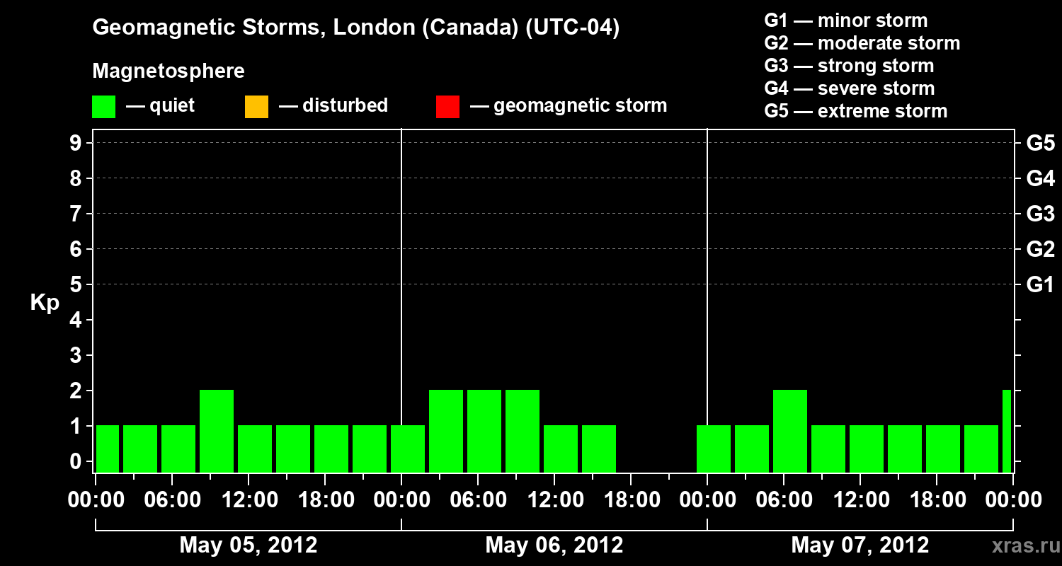 Geomagnetic storms in London (Canada) — May 07, 2012