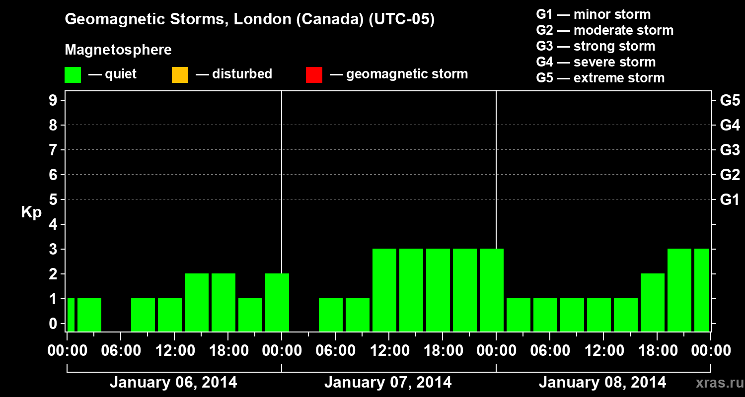 Geomagnetic storms in London (Canada) — Jan 08, 2014