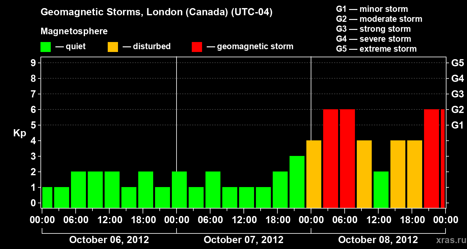 Geomagnetic storms in London (Canada) — Oct 08, 2012