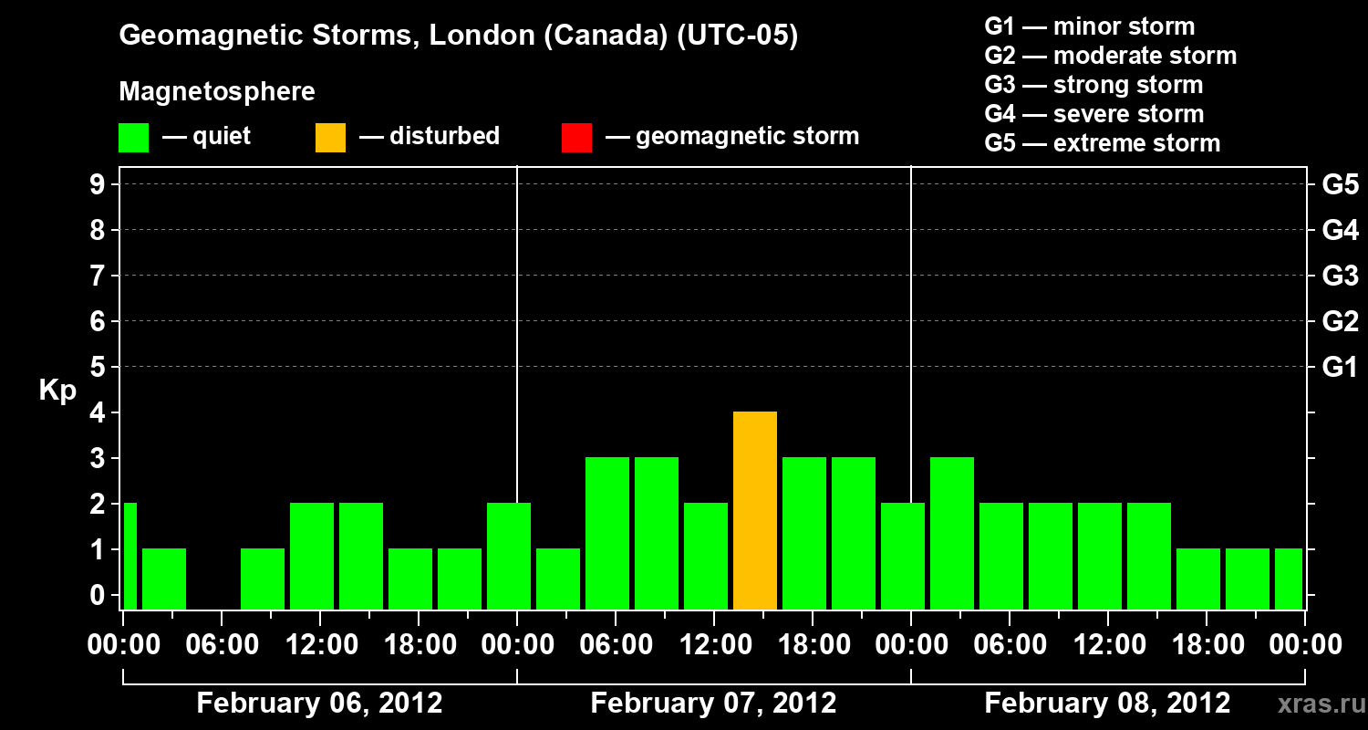 Geomagnetic storms in London (Canada) — Feb 08, 2012
