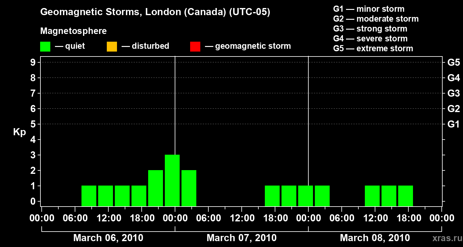 Geomagnetic storms in London (Canada) — Mar 08, 2010