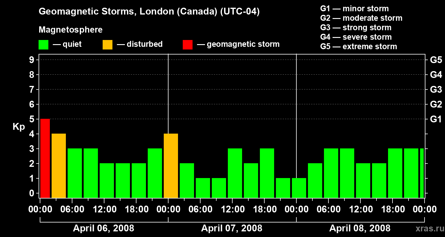 Geomagnetic storms in London (Canada) — Apr 08, 2008
