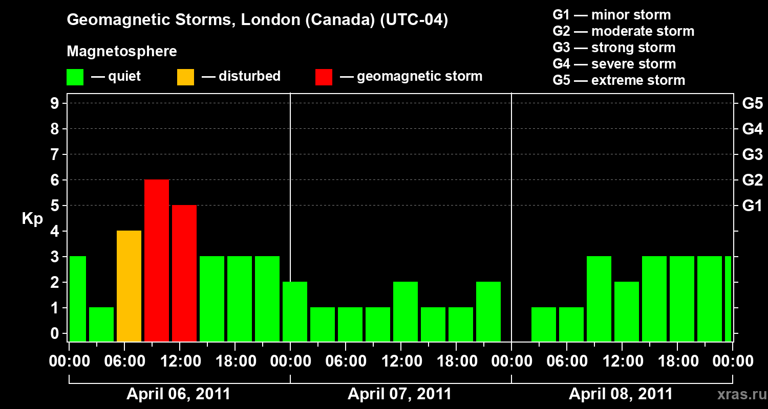 Geomagnetic storms in London (Canada) — Apr 08, 2011