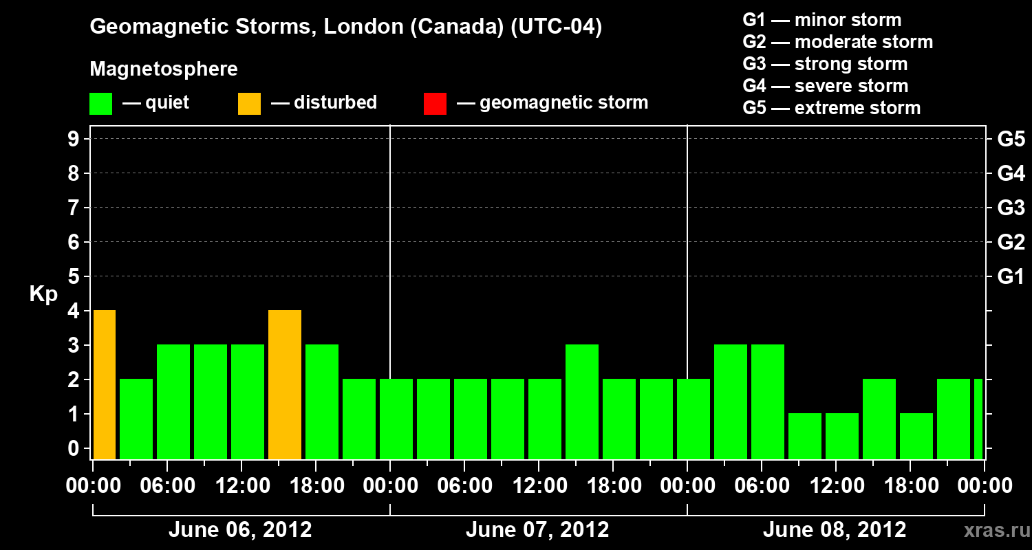 Geomagnetic storms in London (Canada) — Jun 08, 2012